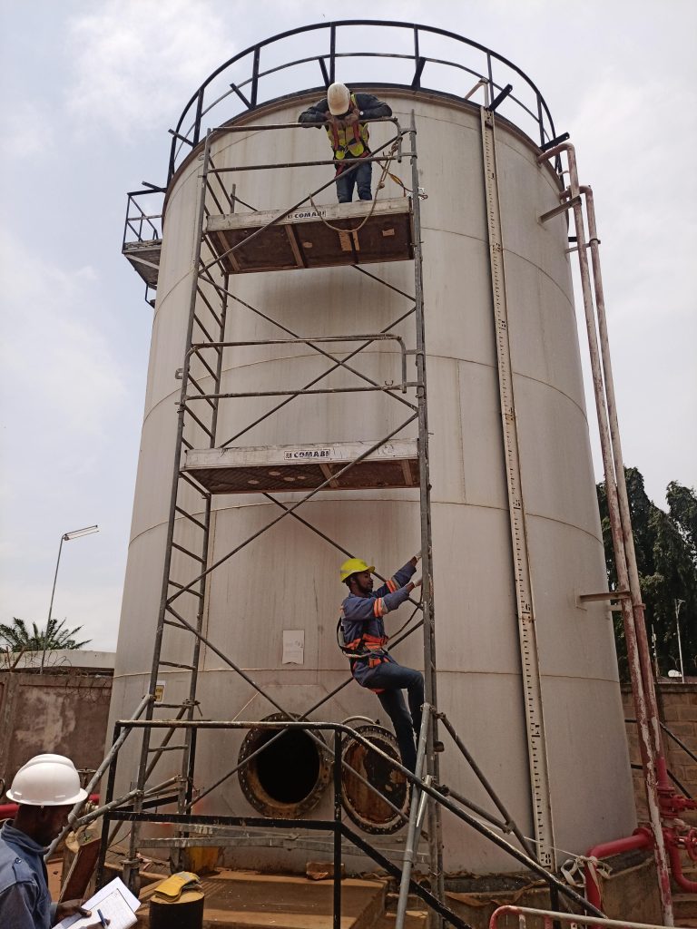Nous avons effectué pour TotalEnergies Togo l’inspection décennale du réservoir vertical d’eau d’une capacité de 200 m³, mis hors service pour la durée de l’intervention, réalisée du 14 août au 09 septembre 2025 sur le site du Pool Pétrolier Aviation HRS-Lomé. Cette inspection périodique s’inscrit dans le cadre des exigences réglementaires et normatives visant à garantir la fiabilité, l’intégrité et la sécurité des réservoirs de stockage en service.